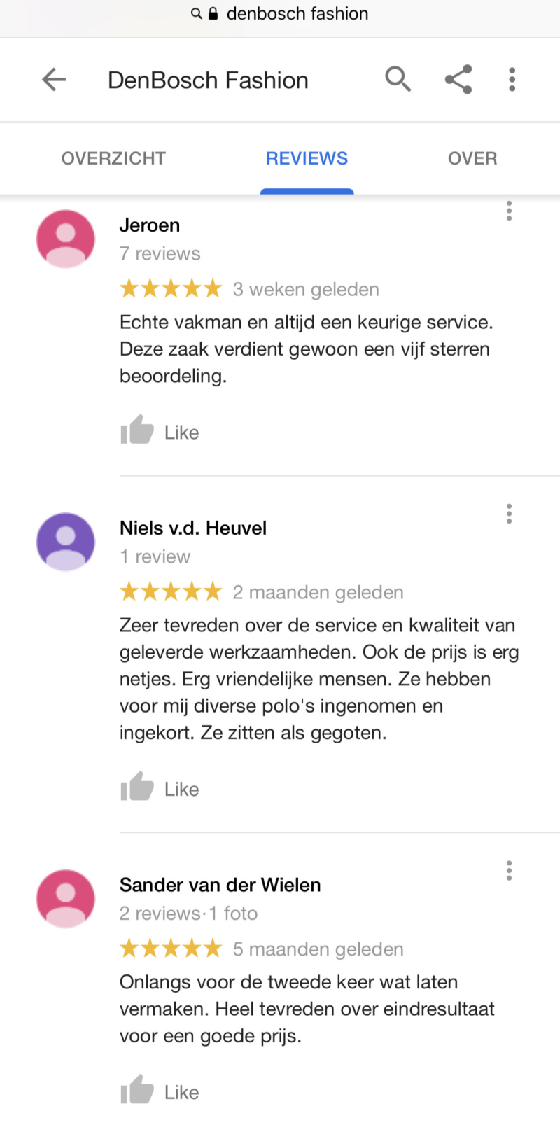 Lees hier de recensies wat klanten hebben geschreven over DenBosch Fashion of --> schrijf zelf een review.